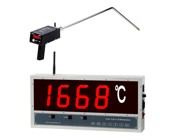 W660无线式大屏幕熔炼测温仪的无线传输技术是将手提式测温仪测得的温度值通过无线传输技术同步精确传